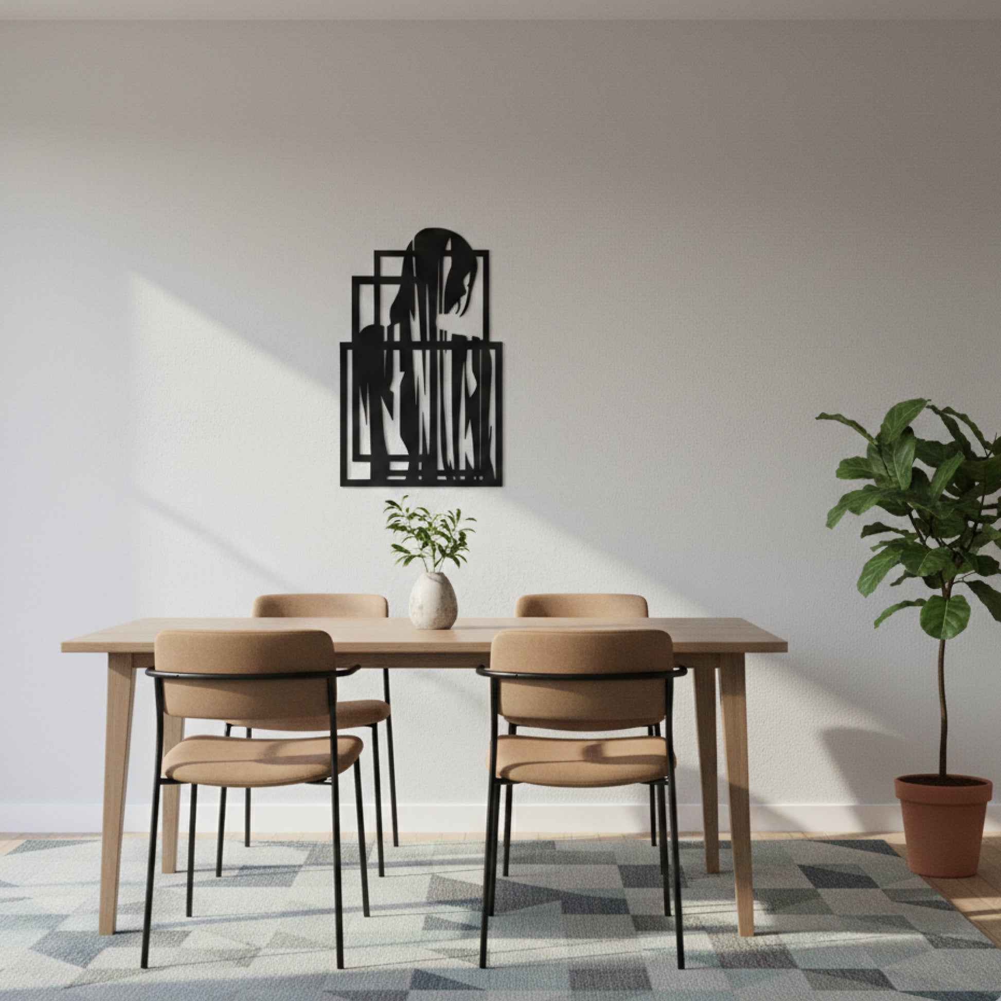 A bold abstract depiction of the feminine form, framed through clean geometric lines. This wall art plays with contrast, shadow, and negative space to create a striking yet elegant visual. It’s modern, expressive, and unapologetically artistic — designed for spaces that value individuality over safe decor.