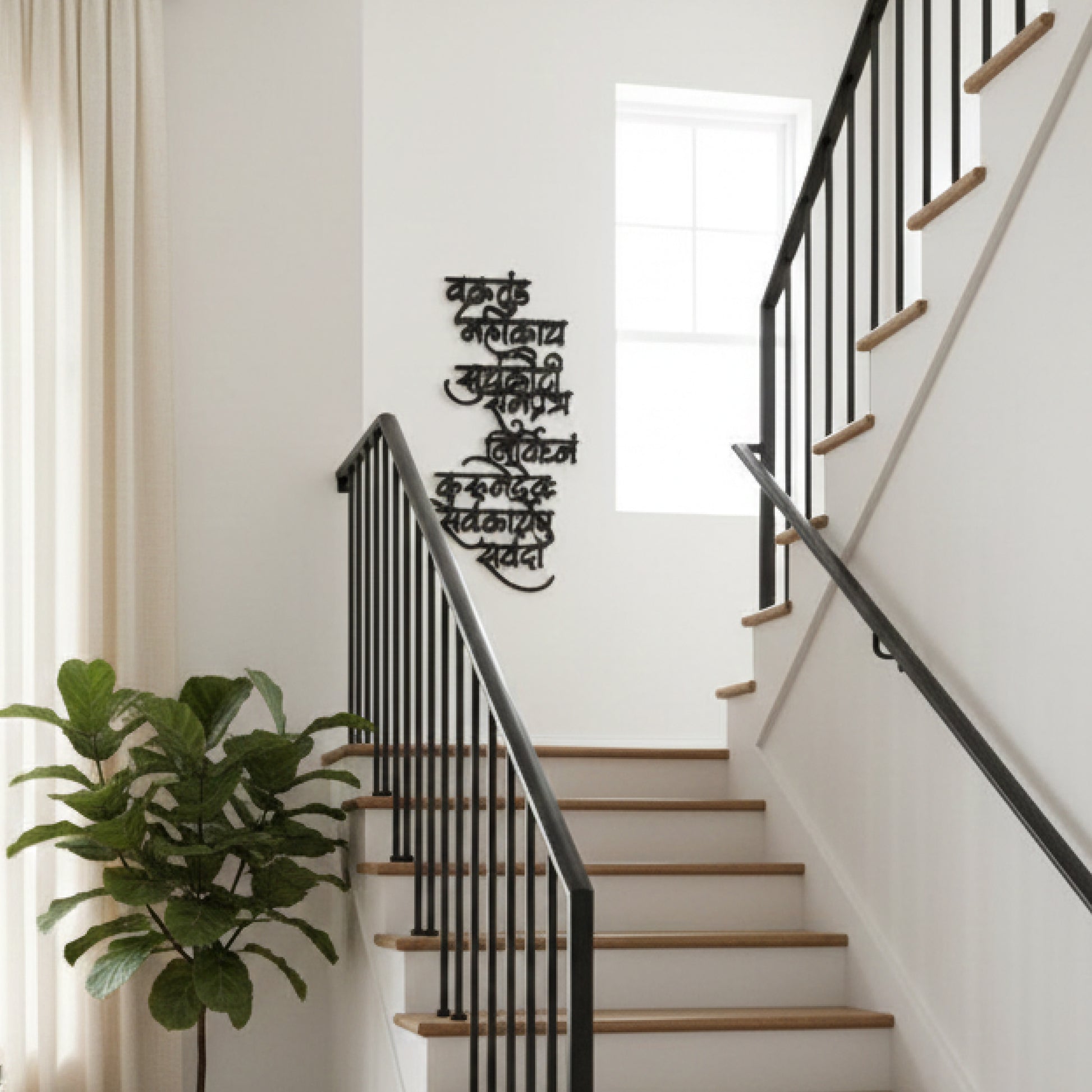 A minimal wall hanging featuring the powerful Vakratunda Mahakaya Ganpati mantra designed to bring calm, positivity, and divine presence into your space.