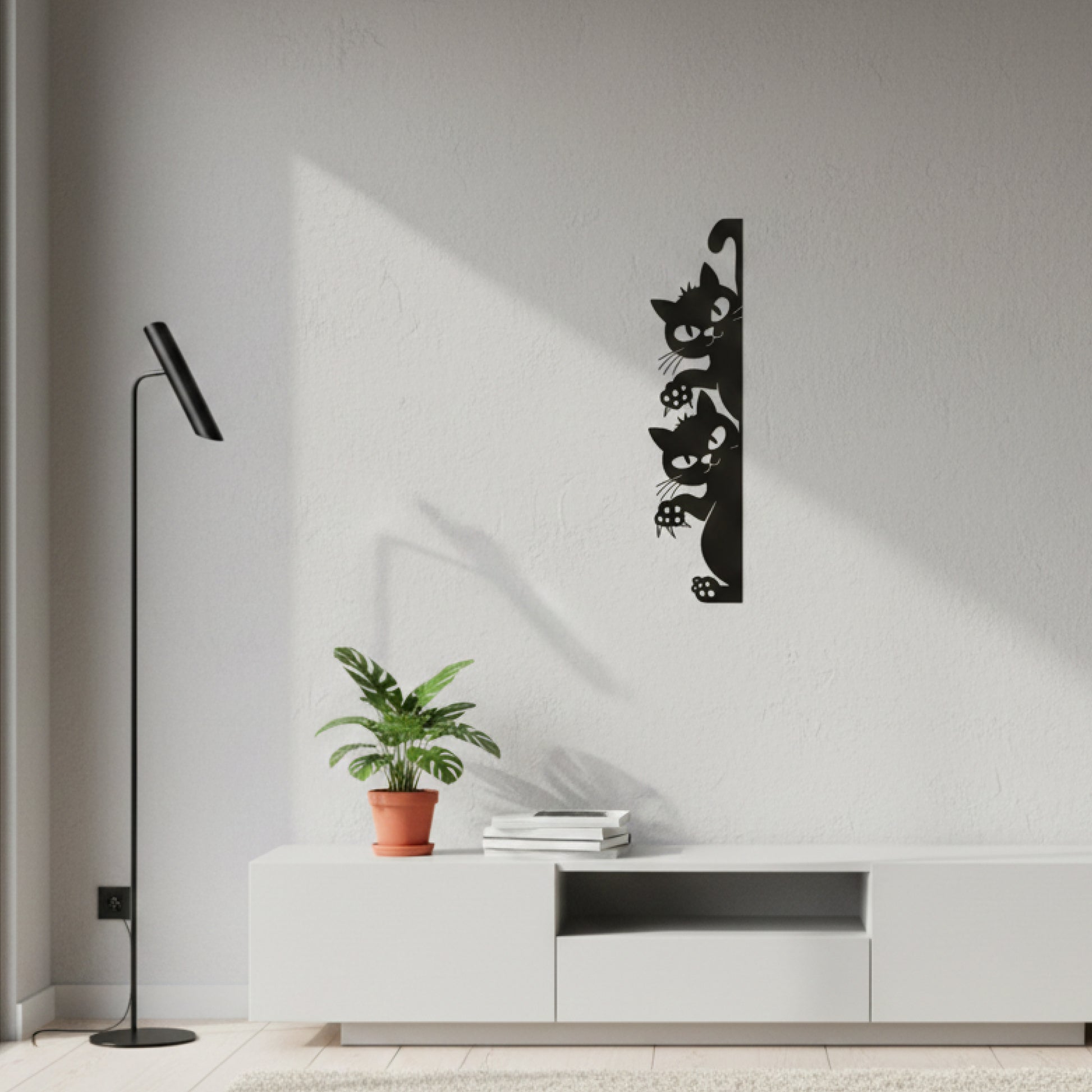 A playful yet minimal wall decor featuring curious cats peeking in and designed to add charm, warmth, and a touch of fun to your space.