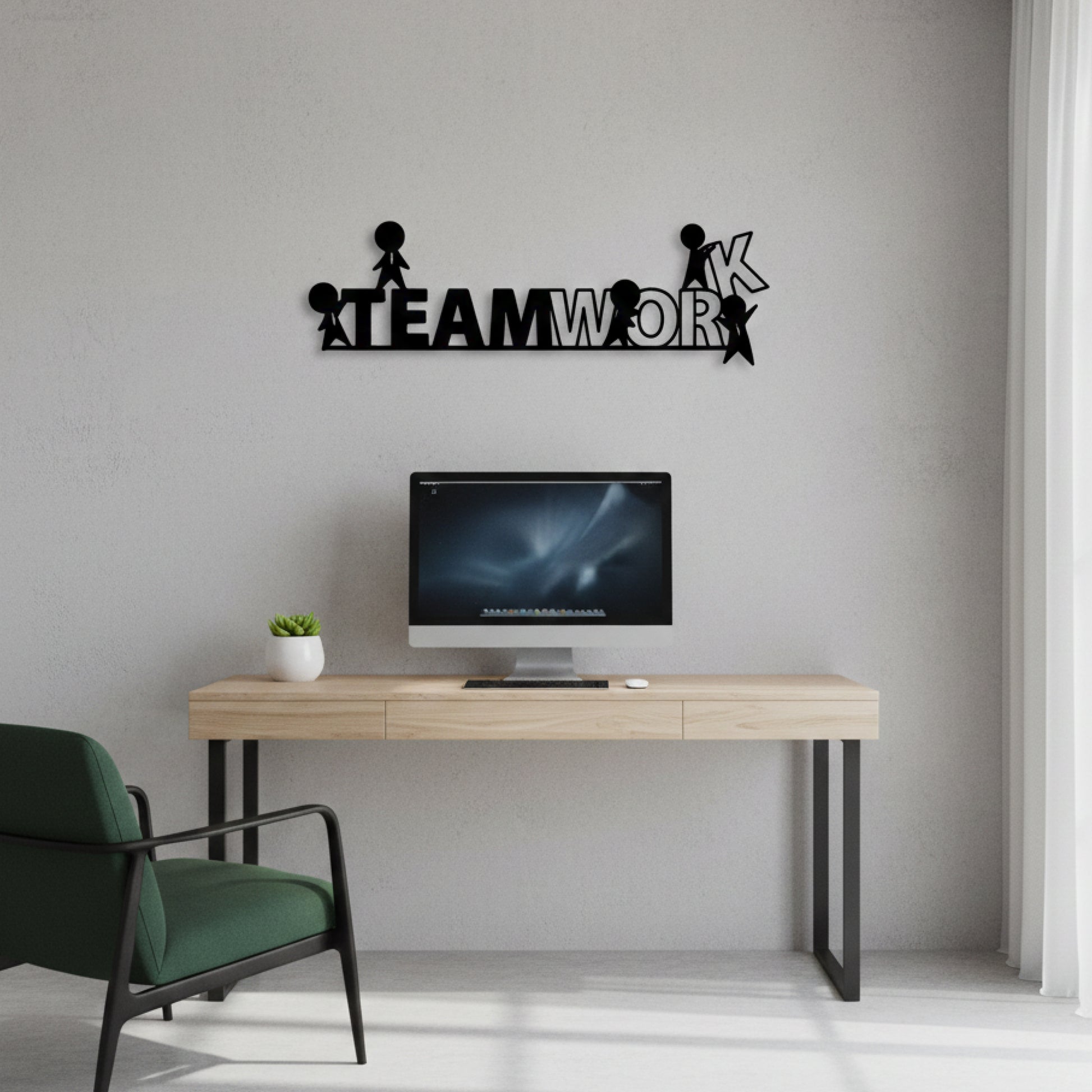 Each figure interacts with the letters, making the design feel active and intentional — not like a random motivational quote slapped on a wall. It works because it’s subtle, clean, and readable from a distance.
